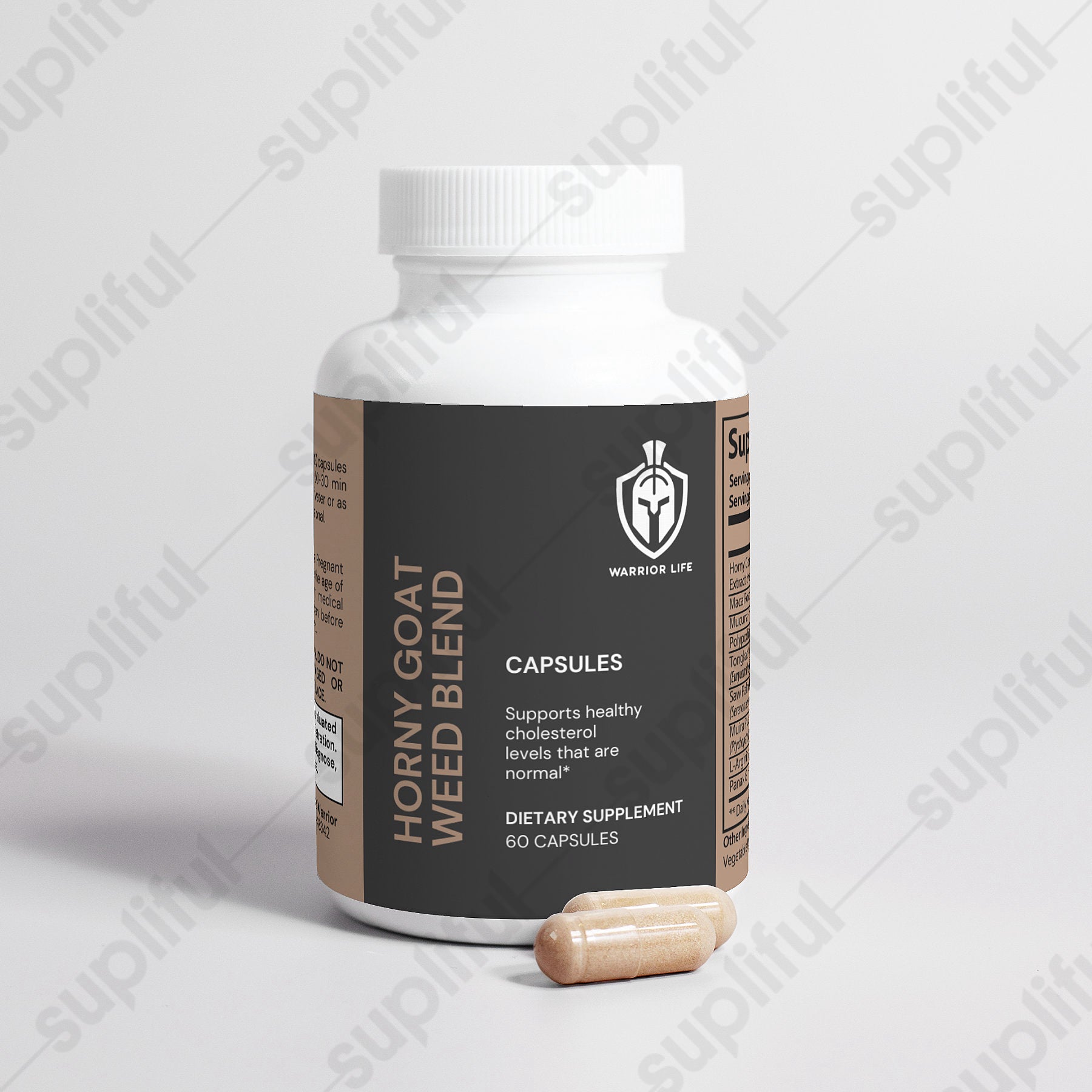 Ingredients: Horny Goat Weed Extract, Maca Root Powder, Mucuna Pruriens 15% L-Dopa, Polypodium Vulgare Powder, Tongkat Ali Root Powder, Saw Palmetto Berry Powder, Muira Puama Root Powder, L-Arginine HCL, Panax Ginseng Root Powder, Gelatin Capsule, Rice Flour, Vegetable Magnesium Stearate.